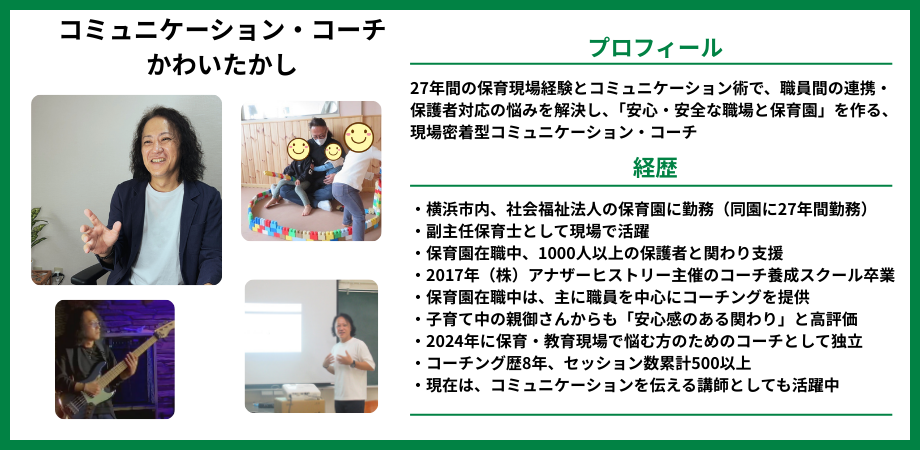 「安心・安全な職場と保育園」を作る、現場密着型コミュニケーション・コーチ